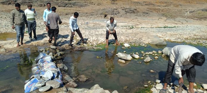गावाच्या नजीकच असलेल्या नाल्यावर माती, दगड, यांच्या साह्याने बांधलेल्या बंधाऱ्यामुळे पाण्याची पातळी वाढण्यास मदत तर होईल.