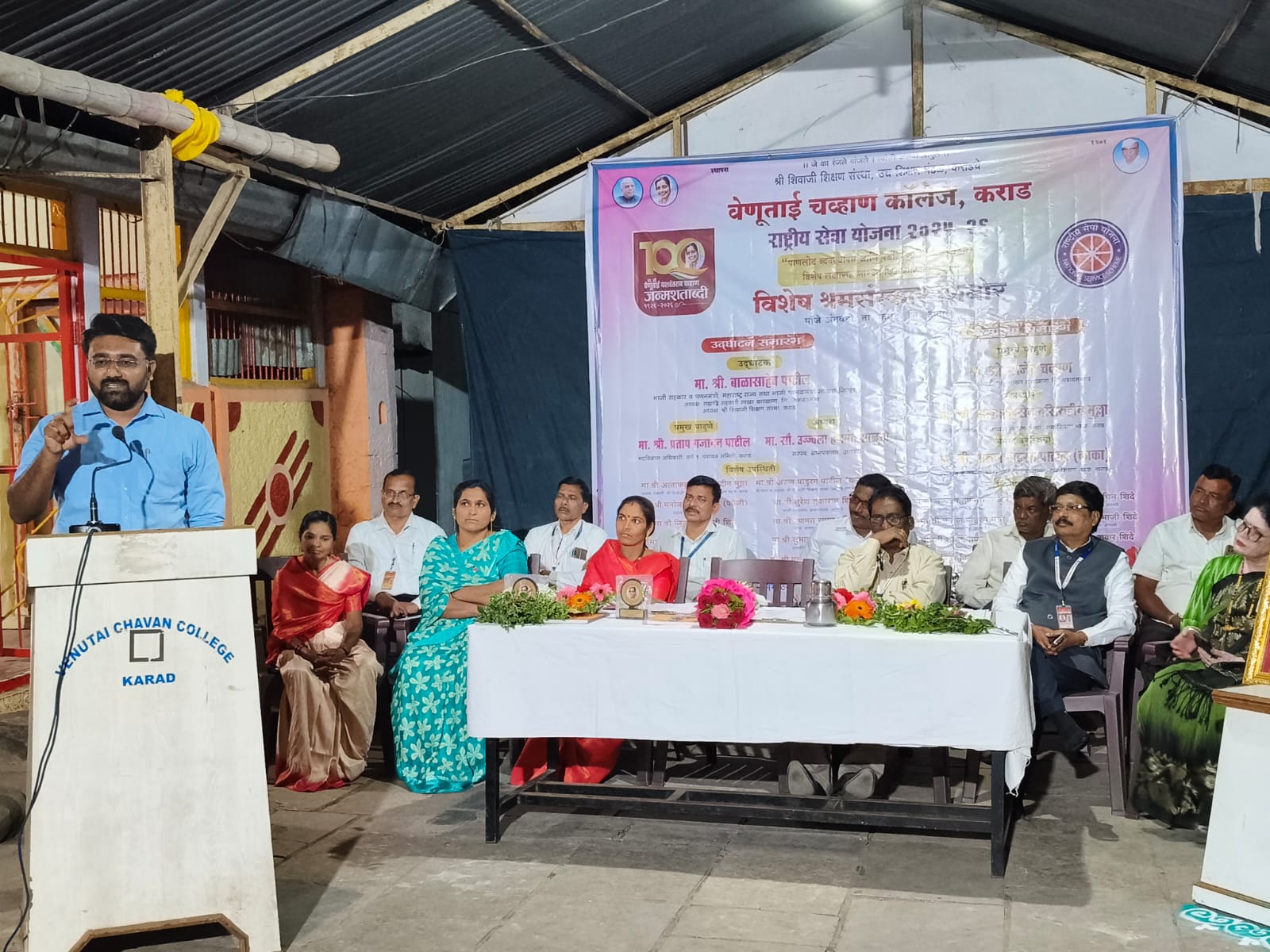 कार्यक्रमाची सुरुवात प्रतिमा पूजनाने करण्यात आली. त्यानंतर एन.एस.एस. स्वयंसेवक विद्यार्थ्यांनी स्वागत गीत व एन.एस.एस. गीत सादर केले. कार्यक्रमाचे प्रास्ताविक महाविद्यालयाचे प्राचार्य प्रो. डॉ. आर. आर. जाधव यांनी केले. शिबिराचा उद्देश कार्यक्रम अधिकारी डॉ. एन. ए. पाटील यांनी स्पष्ट केला. प्रमुख पाहुण्यांचा परिचय डॉ. डी. पी. जाधव यांनी करून दिला. सूत्रसंचालन प्रा. (श्रीमती) एस. सी. भस्मे यांनी केले तर आभार प्रदर्शन कार्यक्रम अधिकारी प्रा. एस. एस. बोंगाळे यांनी मानले. कार्यक्रमास महाविद्यालयातील प्राध्यापक, विद्यार्थी स्वयंसेवक व ग्रामस्थ मोठ्या संख्येने उपस्थित होते.