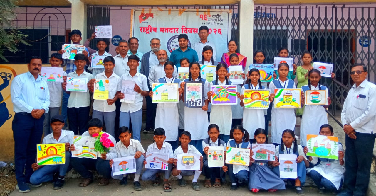 राष्ट्रीय मतदार दिनी म.फुले हायस्कूल येथे चित्रकला स्पर्धा !….