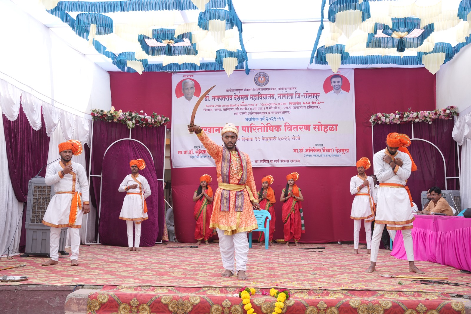 सांगोला(दि.14फेब्रुवारी):- शुक्रवार दि. १३ फेब्रुवारी रोजी डॉ. गणपतराव देशमुख महाविद्यालय सांगोला मध्ये जिमखाना डे व पारितोषिक वितरण सोहळा निमित्त अनेक कार्यक्रम मोठ्या उत्साहात संपन्न झाले. सकाळी ९:०० वाजता पारंपरिक वेशभूषा दिन हा कार्यक्रम साजरा झाला. त्यानंतर सकाळी १०:०० वाजता फनी गेम्सचे उदघाटन संस्थेचे संचालक प्रा. अशोक शिंदे, प्रा.दिपक खटकाळे, प्रा. जयंत जानकर व महाविद्यालयाचे प्राचार्य डॉ.सिकंदर मुलाणी, जिमखाना डे व पारितोषिक वितरण सोहळा कमिटीचे चेअरमन प्रा. अशोक कांबळे यांच्या उपस्थिती मोठ्या उत्साहात संपन्न झाले. दुपारी १२ वाजता फॅन्सी ड्रेस स्पर्धेचा कार्यक्रम मोठ्या उत्साहात संपन्न झाला त्यामध्ये अनेक विद्यार्थ्यांनी वेगवेगळ्या वेशभूषा सादर केलेल्या होत्या.