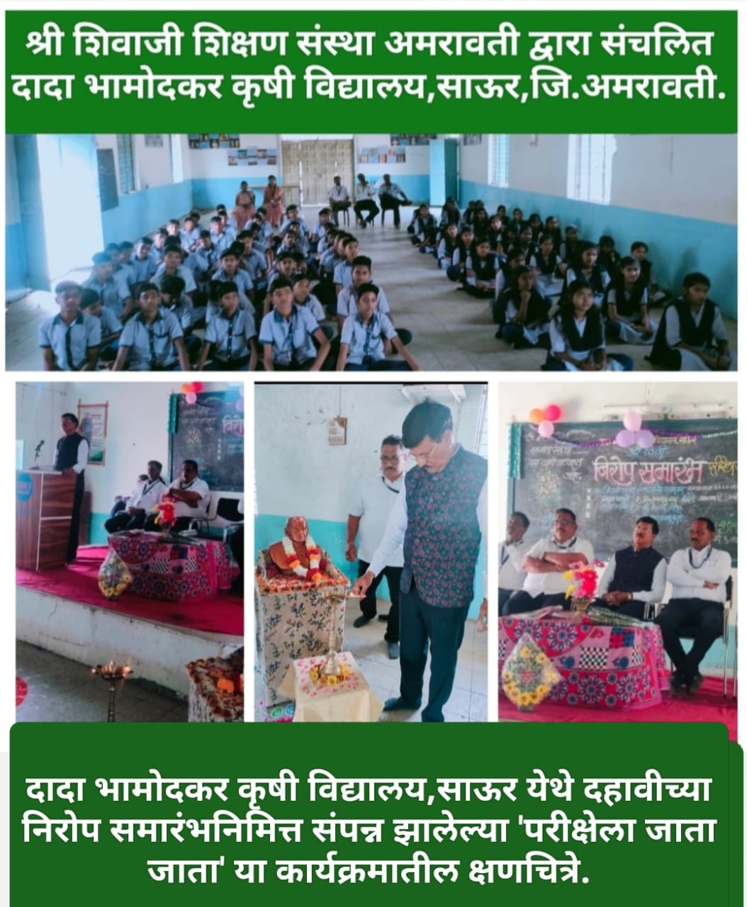 ते श्री शिवाजी शिक्षण संस्था,अमरावती द्वारा संचलित दादा भामोदकर कृषी विद्यालय साऊर,जि.अमरावती येथे दि .१२ फेब्रुवारी २०२६ ला संपन्न झालेल्या दहावीच्या निरोप समारंभात ‘परीक्षेला जाता जाता’ या कार्यक्रमाचे सादरीकरण करताना विचार व्यक्त करीत होते.