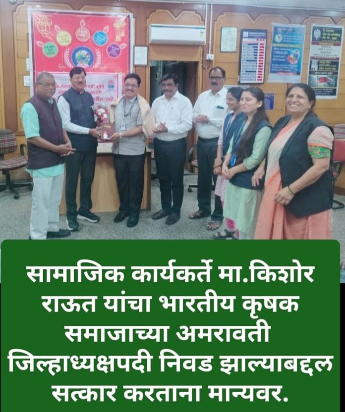 Home अमरावती किशोर राऊत यांचा भारतीय कृषक समाजाच्या जिल्हाध्यक्षपदी निवड झाल्याबद्दल सत्कार संपन्न