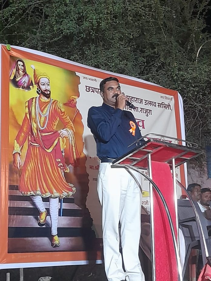 यावेळी डॉ. दिलीप चौधरी यांनी छत्रपती शिवाजी महाराजांच्या जन्म ते मृत्यू आणि त्यानंतर घडलेल्या ऐतीहासिक घडामोडींवर माहिती दिली. मानवी जिवनात शिव चरित्र वाचल्याने कसा बदल होतो हे उदाहरणे दाखले देत सांगितले. गावाच्या विकासासाठी प्रत्येकाच्या हाताला कामं ही आवश्यकता आहे असे प्रतिपादन चौधरी यांनी केले. अविनाश जाधव, बादल बेले, लक्ष्मण नुलावार यांनी मनोगत व्यक्त केले.