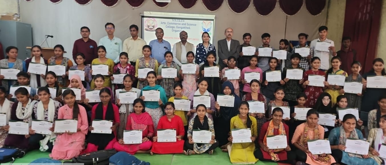 गंगाखेड(दि.24मार्च):- श्री संत जनाबाई महाविद्यालयात विद्यार्थ्यांच्या सर्वांगीण विकासासाठी पीएम उषा या योजने अंतर्गत सॉफ्ट स्किल कोर्स घेणात आला होता. या मध्ये 162 विद्यार्थ्यांनी सहभाग नोदविला.सॉफ्ट स्कील ट्रेनिंग प्रोग्राम प्रमाणपत्र वितरण सोहळा (दि.23 मार्च रविवार) रोजी मोठ्या उत्साहात संपन्न झाला.
