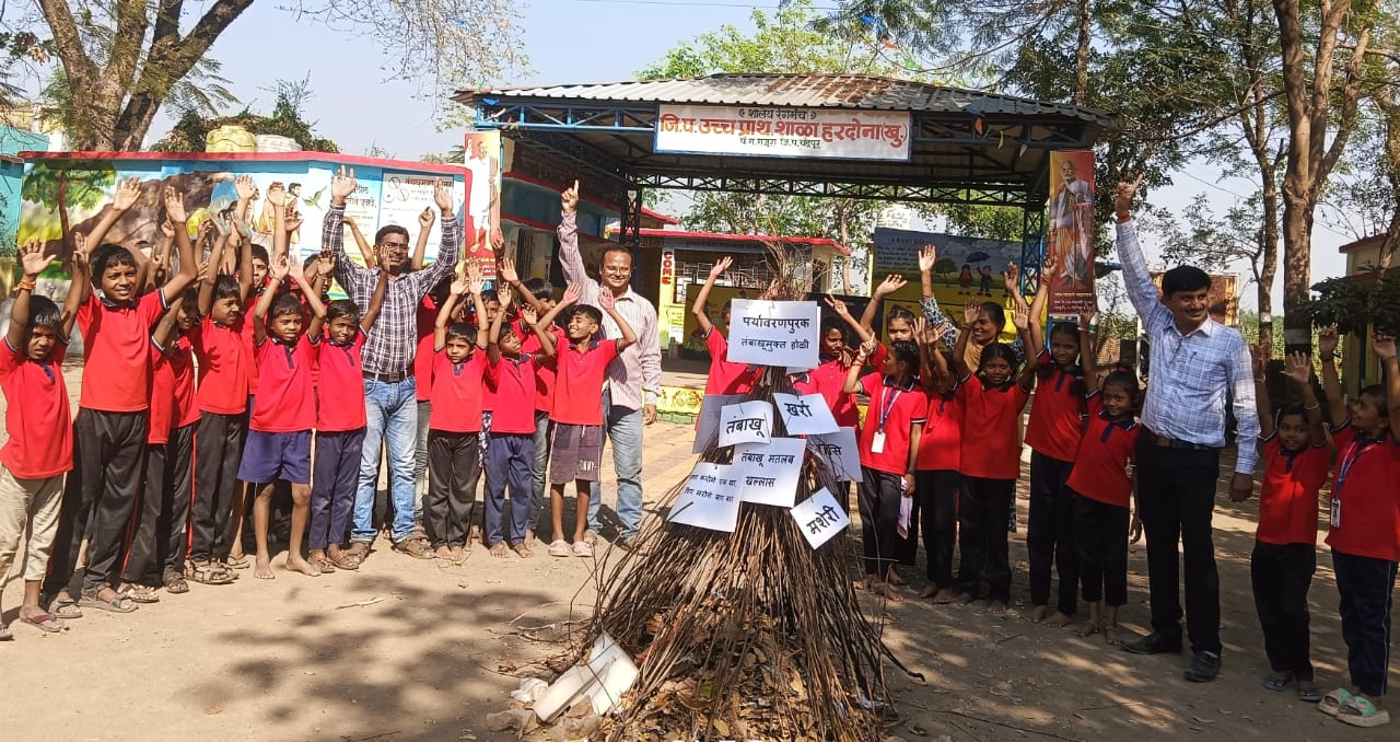 राजुरा(दि.6मार्च):- शिक्षण विभाग, जिल्हा परिषद चंद्रपूर व सलाम मुंबई फाउंडेशन मुंबई यांच्या संयुक्त विद्यमाने जिल्हा परिषद उच्च प्राथमिक शाळा हरदोना खुर्द येथे तंबाखूची प्रतिकात्मक होळी हा उपक्रम राबविण्यात आला.