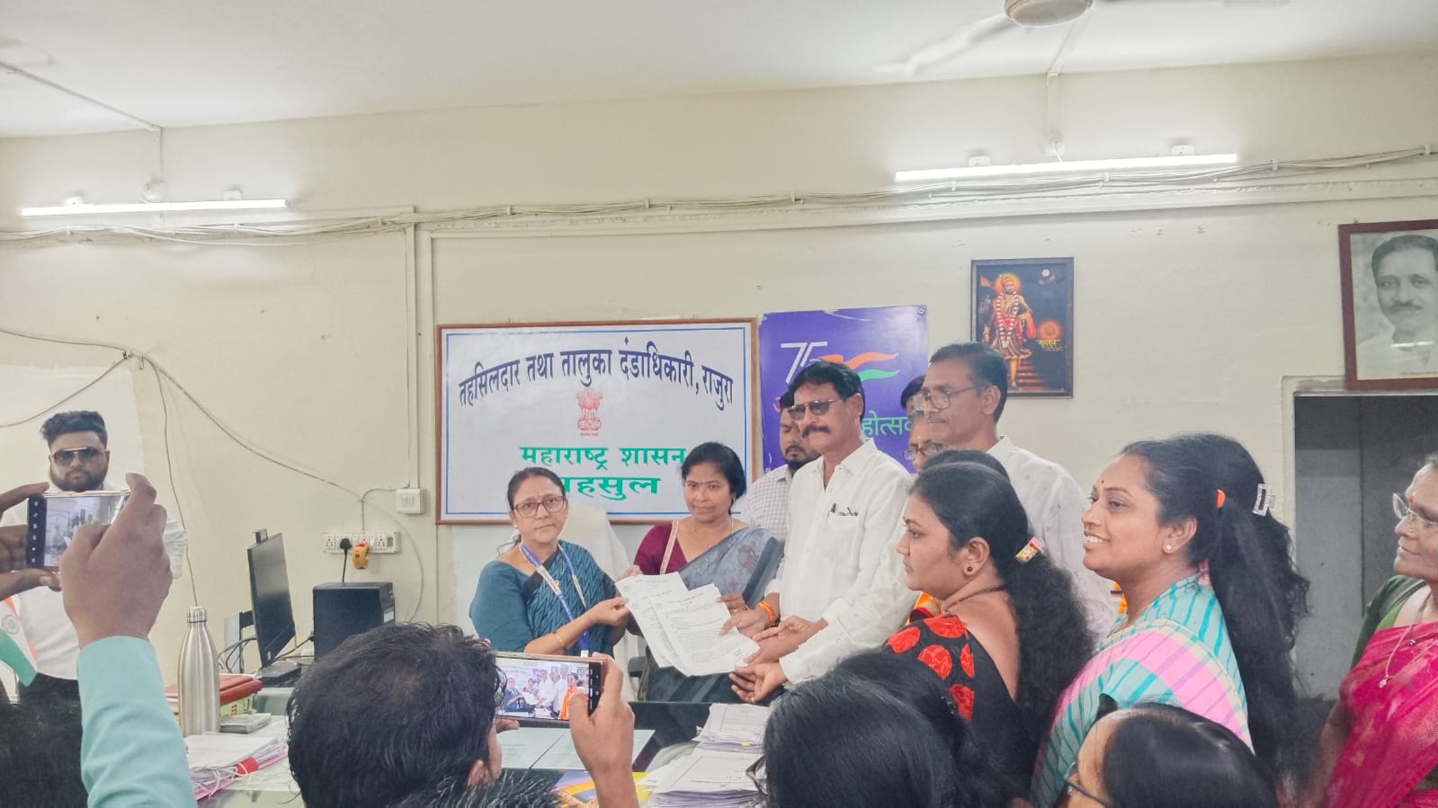 राजुरा(दि.13मार्च):– केंद्र व राज्य शासनाच्या इंधन दरवाढीच्या धोरणाविरोधात तसेच घरगुती गॅस सिलेंडरच्या वाढलेल्या किमती आणि कृत्रिम तुटवड्याच्या निषेधार्थ आज राजुरा येथे तीव्र धरणे आंदोलन करण्यात आले. महाराष्ट्र प्रदेश काँग्रेसचे प्रदेशाध्यक्ष मा. हर्षवर्धनजी सपकाळ व चंद्रपूर जिल्हा काँग्रेस कमिटीचे जिल्हाध्यक्ष माजी आमदार सुभाषभाऊ धोटे यांच्या सूचनेनुसार राजुरा नगरपरिषदेचे नगराध्यक्ष अरुणभाऊ धोटे आणि तालुका काँग्रेस कमिटीचे अध्यक्ष रंजन लांडे यांच्या नेतृत्वाखाली संविधान चौक येथे हे आंदोलन पार पडले. यानंतर संविधान चौक ते तहसील कार्यालय पर्यंत रॅली काढण्यात आली. यावेळी जोरदार नारेबाजी करीत शासनाचा निषेध करण्यात आला. आंदोलनाच्या शेवटी यासंदर्भातील विविध मागण्यांचे निवेदन तहसीलदार राजुरा यांच्या मार्फत महामहिम राष्ट्रपती द्रौपदी मुर्मु यांना पाठविण्यात आले व समस्या सोडवण्याची विनंती करण्यात आली. गॅस दरवाढ व वाढत्या महागाईविरोधात तीव्र निषेध नोंदविण्यात आला.