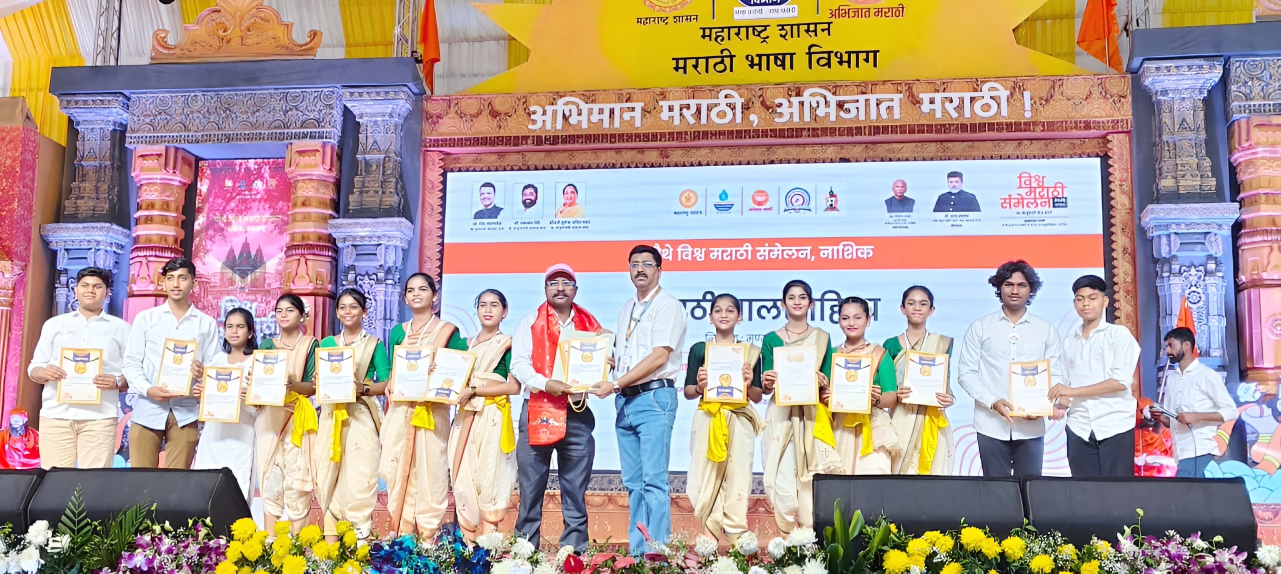 अनुभूती इंग्लिश मिडीयम स्कूलच्या मुख्याध्यापिका रश्मी लाहोटी यांच्या मार्गदर्शनाखाली नृत्य शिक्षक ज्ञानेश्वर सोनवणे यांच्या विद्यार्थिंनीं व वादकांनी नाशिकमधील विश्व मराठी संमेलनात जळगावचा झेंडा दिमाखात रोवला. या कलावंतांना बालरंगभूमी परिषद मध्यवर्ती मुंबईच्या अध्यक्षा ॲड.निलम शिर्के सामंत व प्रभारी प्रमुख कार्यवाह योगेश शुक्ल यांच्या प्रयत्नातून ही संधी मिळाली होती. या मिळालेल्या संधीचे आपल्या जोशपूर्ण नृत्याने या विद्यार्थिंनींनी सोने केले.
