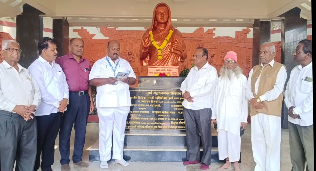 यावेळी संस्थेचे अध्यक्ष रघुनाथ ढोक यांनी जेष्ठ गीतकार प्रवीण दवणे यांनी सावित्रीमाई यांच्या जीवनावरील लिहिलेली “ज्ञानज्योती” कविता सादर करून सपुर्ण सावित्रीमाई चा त्याग ,संघर्ष आणि महिलांसाठी प्रथम शाळा सुरु केल्याचे सांगितले .तसेच भिडे वाडा यावर नुकतेच 6 मार्च 2026 रोजी आलेला “भिडे वाडा” हा चित्रपट प्रदर्शित झालेला असून या मध्ये अनेक नामवंत दिग्गज कलाकाराने काम केलेले आहे. हा सिनेमा शिवानी राजेशिर्के आणि अजित शिरोळे यांनी दिग्दर्शन केल्याचे सांगून आपण सर्वांनी हा चित्रपट संपूर्ण परिवारासह पहावे तसेच सावित्रीमाई वरील चालू असलेली स्टार प्रवाह – टीव्ही सिरीयल नित्य नियमाने पहावे असे देखील आव्हान केले.