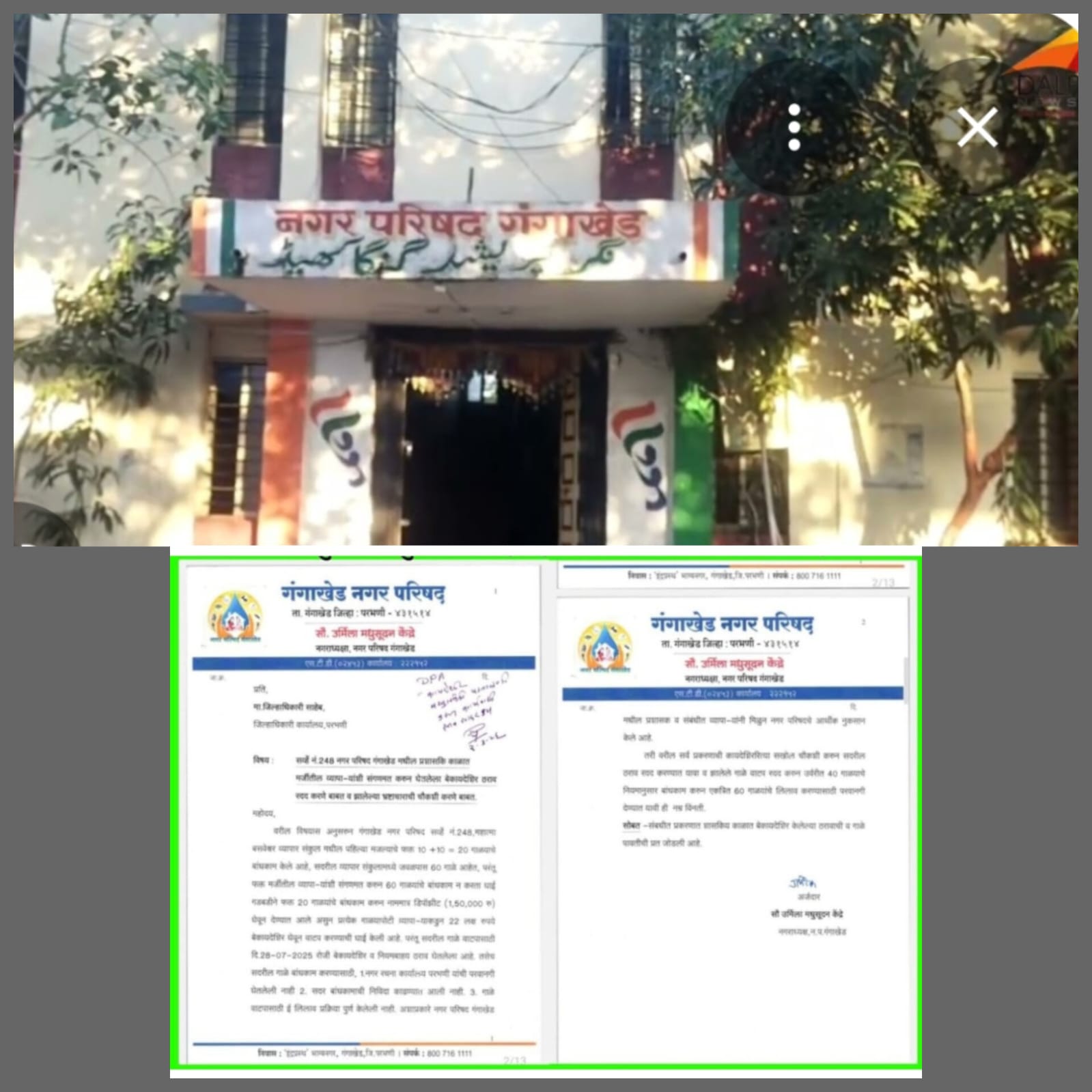 गंगाखेड(दि.12मार्च):- गंगाखेड नगर परिषद मधील प्रशासकीय काळात मार्जितील व्यपारांशी संगनमत करून घेतलेल्या बेकायदेशीर निर्णय रद्द करणे व झालेल्या भ्रष्टाचाराची चौकशी करण्यात यावी अशी मागणी गंगाखेड नगर परिषद च्या लोकनियुक्त अध्येक्ष सौ. उर्मिला मधुसूदन केंद्रे यांनी जिल्हा अधिकारी यांना लेखी तक्रार दाखल करण्यात आली.