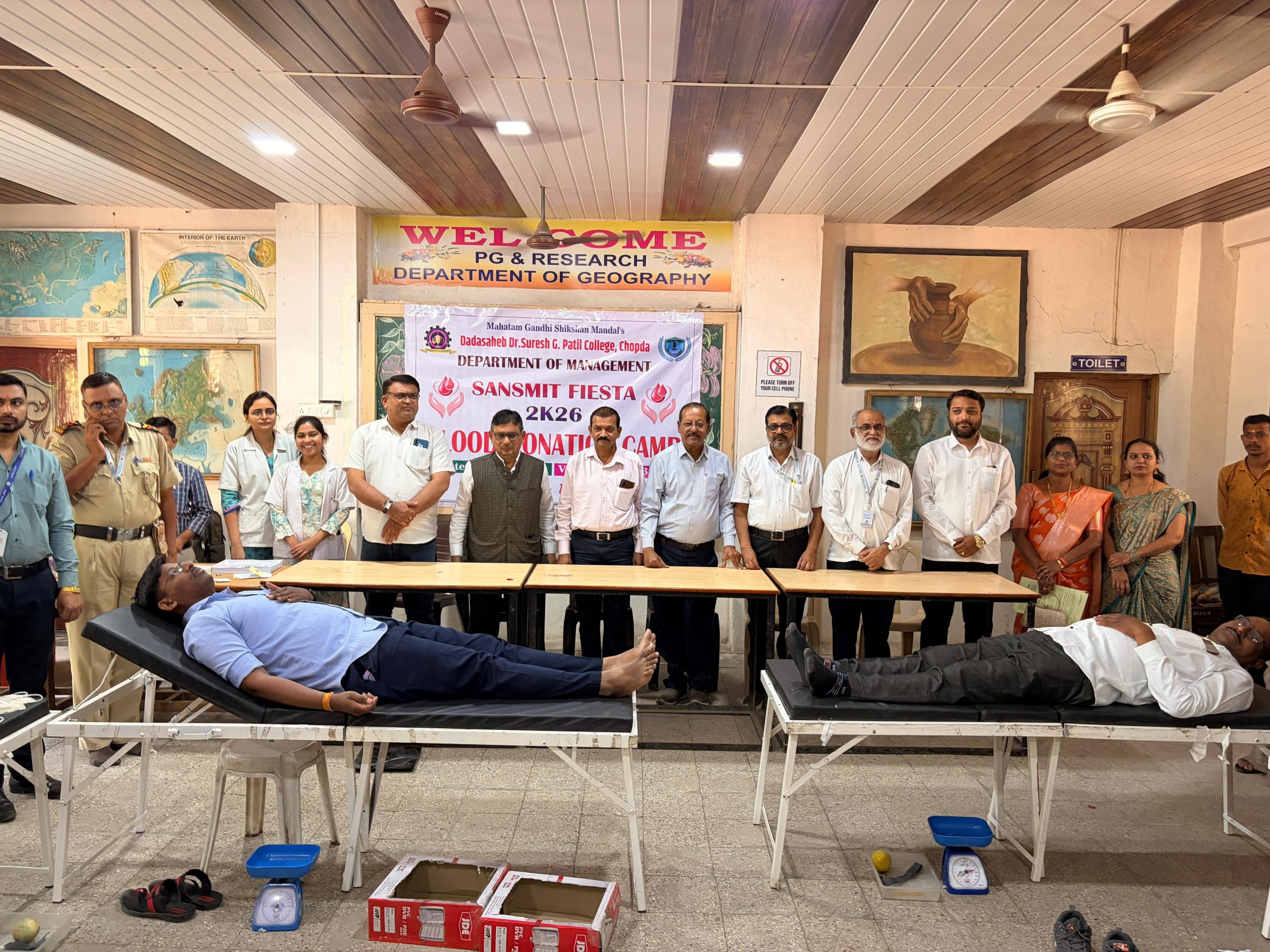 चोपडा(दि.13मार्च):-येथील महात्मा गांधी शिक्षण मंडळाचे दादासाहेब डॉ. सुरेश जी. पाटील महाविद्यालयातील व्यवस्थापन विभागातर्फे आयोजित ‘महारक्तदान शिबीर ‘ प्रचंड उत्साहात पार पडले. या रक्तदान शिबिरास महाविद्यालयातील शिक्षक, शिक्षकेतर कर्मचारी व विद्यार्थ्यांचा मोठ्या प्रमाणात प्रतिसाद लाभला. यावेळी ८० रक्त पिशव्यांचे संकलन करण्यात आले.