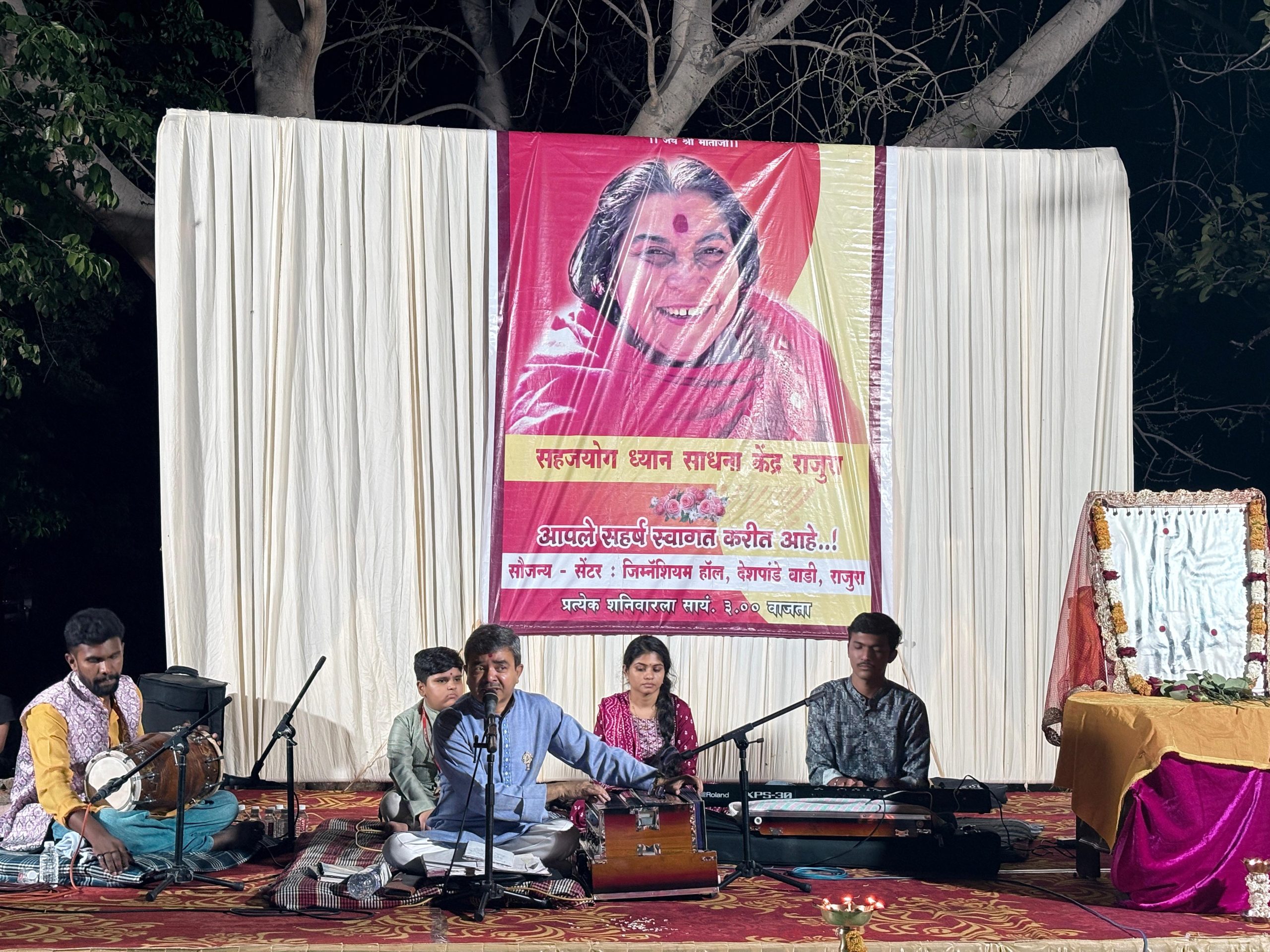 राजुरा(दि.१एप्रिल):-सहजयोग ध्यान साधना केंद्र राजुरा तर्फे सहज भक्ती संगीत व आत्म साक्षात्काराची अनुभूती कार्यक्रम राजुरा येथील जवाहर नगर, माता मंदिर वार्ड येथील खुल्या पटांगणावर आयोजित करण्यात आला होता. या कार्यक्रमाला प्रमुख मार्गदर्शक म्हणून संतोष आकुलवार, रिजल समन्वयक, महाराष्ट्र समिती सदस्य, विलास शेरकुरे, जिल्हा समन्वयक चंद्रपूर, राजेश वांढरे, माजी महाराष्ट्र समिती सदस्य, राजश्री देरकर, महिला जिल्हा समन्वयक चंद्रपूर आदींची प्रामुख्याने उपस्थिती होती. तसेच माजी आमदार ॲड.वामनराव चटप, नगराध्यक्ष अरुण धोटे, उप नगराध्यक्ष दिलीप देरकर यांची विशेष उपस्थिती होती.