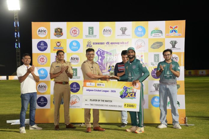 जळगाव(दि.25एप्रिल):- जळगाव जिल्हा क्रिकेट असोसिएशनच्या वतीने व रतनलाल सी. बाफना ज्वेलर्स प्रायोजीत व अलरीक इलेक्ट्रीकल्स सहप्रायोजकत्वाखाली आयोजित जळगाव क्रिकेट लिग-२०२६, JCL T-20 क्रिकेटच्या रविवारी होणाऱ्या ग्रॅण्ड फायनल साठी पहिल्या क्वालिफायर मधून विजयी होत जळगाव कोगटा किंग च्या २४२ धावांचा डोंगर सर करत अमळनेर सुहांस जायंटस ने थाटात प्रवेश केला आहे. रात्री उशिरा सुरू असलेल्या एलिमिनेटर सामन्यातून दुसरा क्वालिफायर साठी संघ ठरेल. दुसरी क्वालिफायर उद्या दि. २५ एप्रिल दुपारी ४ वाजता जैन ड्रीम स्पेसेस या भव्य क्रीडांगणावर होईल.
