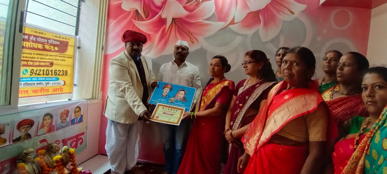 राष्ट्रीय ओबीसी महासंघातर्फे सन्मान पत्र व संस्थेचे वतीने सामाजिक क्रांतीचे जनक महात्मा फुले आणि सावित्रीबाई फुले यांची फोटो प्रेम आणि ज्ञानज्योती सावित्रीबाई फुले व महात्मा फुले गीत चरित्र सौ.अश्विनी आणि विक्रम बनकर यांना सत्यशोधक ढोक यांनी भेट दिले.