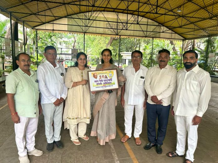 धरणगाव(दि.27जून):- तालुक्यातील राष्ट्रवादी काँग्रेस शरदचंद्र पवार पक्षाचे निष्ठावंत पदाधिकाऱ्यांनी आज यशवंतराव चव्हाण प्रतिष्ठान मुंबई येथे संसदरत्न खासदार सुप्रिया सुळे यांची भेट घेऊन “गाव तेथे राष्ट्रवादी” या संकल्पनेसाठी पोस्टर अनावरण केले.