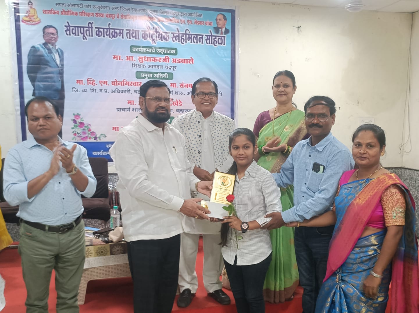 बल्लारपूर शासकीय औद्योगिक प्रशिक्षण संस्थेचे प्राचार्य राजरत्न वानखेडे, वणी शासकीय औद्योगिक प्रशिक्षण संस्थेचे प्राचार्य संजय तेलतुंबडे, सत्कारमूर्ती नामदेव गेडकर , श्रीमती श्यामलता गेडकर , श्रीमती तेलतुंबडे प्रामुख्याने उपस्थित होते. या कार्यक्रमात एन. एन. गेडकर यांनी संकलित केलेल्या बुद्ध भीम गीतसंग्रह प्रकाशन करण्यात आले . चंद्रपूर शास.औ.प्र.संस्थेतून सेवानिवृत्त झाल्याबद्दल एन. एन. गेडकर यांचा सपत्नीक सत्कार आ. अडबाले यांच्या हस्ते राष्ट्रसंत विचार साहित्य परिषदेच्या वतीने करण्यात आला.