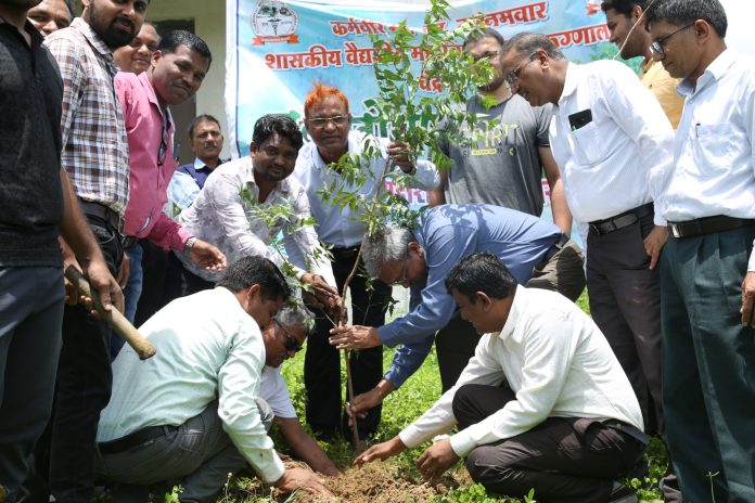 चंद्रपूर(दि.12जुलै):-राष्ट्रीय वन नितीप्रमाणे एकुण भौगोलिक क्षेत्राच्या 33 टक्के क्षेत्रावर वन आणि वृक्षाच्छादन असणे आवश्यक आहे. सद्यस्थितीत राज्यात वन आणि वृक्षाच्छादनाचे प्रमाण 21.25 टक्के आहे. जागतिक तापमानातील वाढ, हवामान आणि ऋतुबदल याची दाहकता आणि तीव्रता कमी करण्यासाठी मोठ्या प्रमाणात वृक्ष लागवड करण्याची आवश्यकता आहे. त्यानुषंगाने ‘हरित महाराष्ट्र, समृध्द महाराष्ट्र’ अभियानांतर्गत कर्मवीर मा.सां.कन्नमवार शासकीय वैद्यकीय महाविद्यालय व रुग्णालय परिसरात 1501 वृक्ष लागवड करण्यात आली.