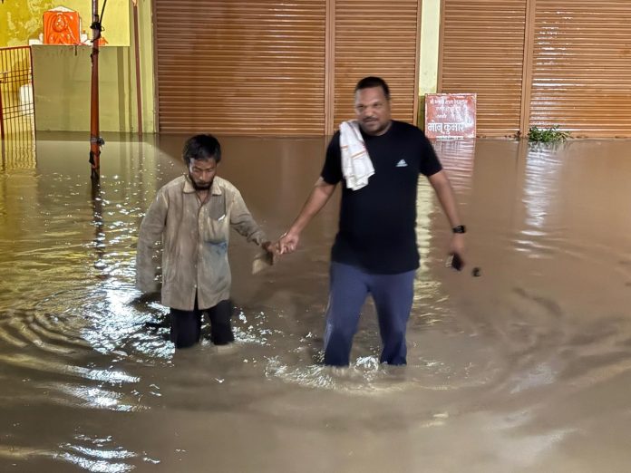 मंदिर परिसरातून पाण्याचा प्रवाह खुप वेगाने होता व मंदिर परिसरात चार ते पाच फूट पाणी असल्याने त्याठिकाणी कोणालाही जाता येत नव्हते. नाल्याचे पाणी राजुरा शहराची आराध्य दैवत असलेल्या भवानी मंदिराच्या पोर्च मध्ये शिरले होते. याच मंदिराच्या पायथ्याशी असलेल्या हनुमान मंदिरात एक प्रमोद गटलेवार मतिमंद युवक अडकून असल्याचे दिसताच प्रसंगवधान साधून पत्रकार सागर भटपल्लीवार यांनी त्यांना सुखरूप भवानी मंदिरात आणले.
