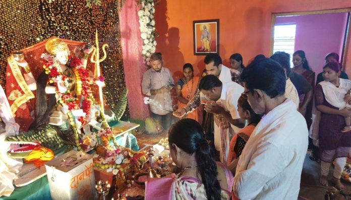 भोई समाजा कडून पूजेच्या कार्यक्रमाला काँग्रेसचे नेते व माजी जि.प.अध्यक्ष तथा अहेरी बाजार समिती संचालक मा.श्री.अजयभाऊ कंकडालवार यांना निमंत्रण देण्यात आली होते निमंत्रनाला मान देऊन आज गंगा देवी पूजा कार्यक्रमाला अजय कंकडालवार यांनी उपस्थित राहून गंगा देवीची विधिवत पूजा अर्चना करून देवीची दर्शन घेतले.