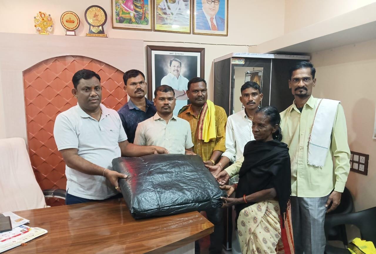 हीबाब काँग्रेसनेते व माजी जि.प.अध्यक्ष तथा अहेरी बाजार समितीचे संचालक मा.श्री.अजयभाऊ कंकडालवार यांना माहिती मिळतच कंकडालवारांनी पोचूबाई सिडाम हिला अहेरी जनसंपर्क कार्यालया येथे बोलवून त्यांना ताडपत्री मदत करण्यात आली आहे.सिडाम परिवाराला ताडपत्री मिळल्याने त्यांच्या चेहऱ्यावर आनंदाचे वातावरण दिसून आले.त्यावेळी सिडाम कुटुंबातील समस्त सदस्यांनी अजयभाऊंची आभार मानले.