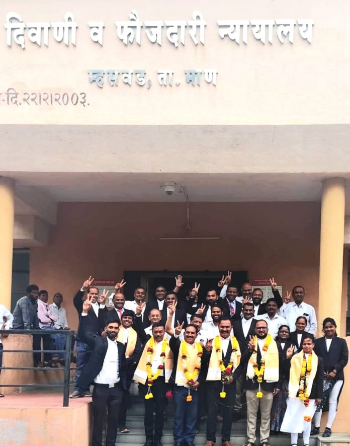 म्हसवड वकील संघाच्या नवनिर्वाचित पदाधिकारी यांचे ग्रामविकास मंत्री जयकुमार गोरे,भाजपाचे शिवाजीराव शिंदे,म्हसवड पालिकेचे माजी नगराध्यक्ष विजय सिन्हा,नितीन दोशी आदींनी अभिनंदन केले.
