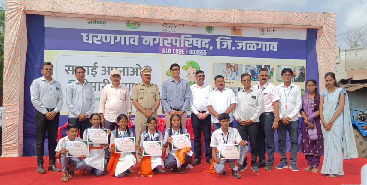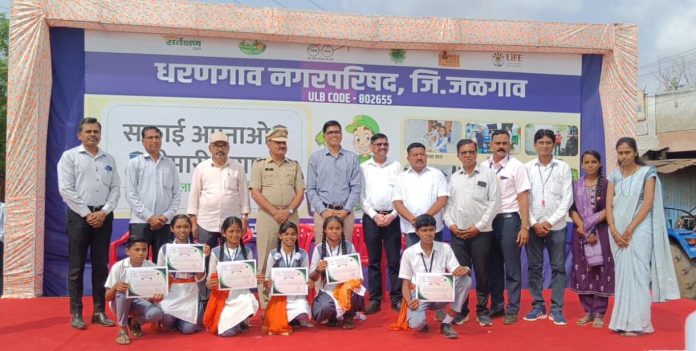 यानंतर या अभियान अंतर्गत दि. 01 जुलै ते 18 जुलै दरम्यान शालेय स्तरावर स्वच्छता विषयावर आधारित रांगोळी, चित्रकला, रंगभरण, निबंध, टाकाऊ पासून टिकाऊ वस्तू बनविणे तसेच प्लास्टिक संकलन मोहिम स्पर्धेत उत्कृष्ट सादरीकरण करणाऱ्या सर्व विद्यार्थ्याना शाळानिहाय प्रमाणपत्र देऊन गौरविण्यात आले. तसेच या अभियानामध्ये सक्रिय सहभाग नोंदविणा-या शाळांच्या मुख्याध्यापकांचा देखील सन्मानपत्र व वृक्षरोप देवून पोलीस निरिक्षक सुनिल पवार व मुख्याधिकारी रामनिवास झंवर यांच्या हस्ते सन्मान करण्यात आला. त्यानंतर उपस्थित सर्व विद्यार्थ्यांसह स्वच्छतेची शपथ घेवून कार्यक्रमाचा समारोप करण्यात आला.