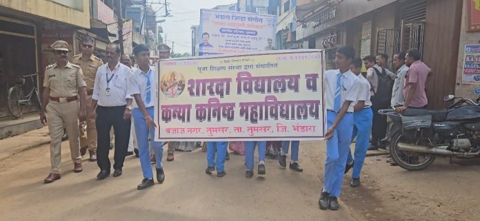 भंडारा(दि.25जुलै):-“नशा मुक्त भारत” या संकल्पनेच्या दिशेने ठाम पावले टाकत, भंडारा जिल्ह्यातील तुमसर येथे शारदा विद्यालय व कन्या कनिष्ठ महाविद्यालय तसेच जनता विद्यालय यांच्या संयुक्त विद्यमाने एक प्रेरणादायी रॅलीचे आयोजन करण्यात आले. या रॅलीद्वारे नशा मुक्त समाज निर्माण करण्यासाठी समाजातील प्रत्येक घटकाला जागरूक करण्याचा प्रयत्न करण्यात आला.