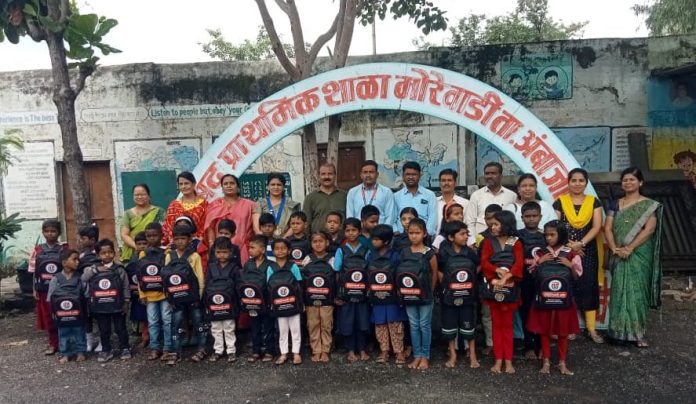 अंबाजोगाई (प्रतिनिधी ) : अंबाजोगाई तालुक्यातील जिल्हा परीषद शाळा मोरेवाडी येथे ईनरविल क्लब अंबाजोगाई च्या वतीने तुळजाभवानी अर्बन मल्टीस्टेट को.आँप. बँक यांच्या सहकार्याने दिनांक २६ जुलै रोजी इयत्ता पहिली व दुसरीच्या एकुण ४० विद्यार्थ्यांना शालेय साहित्य व स्कुल बँग चे वितरण करण्यात आले.