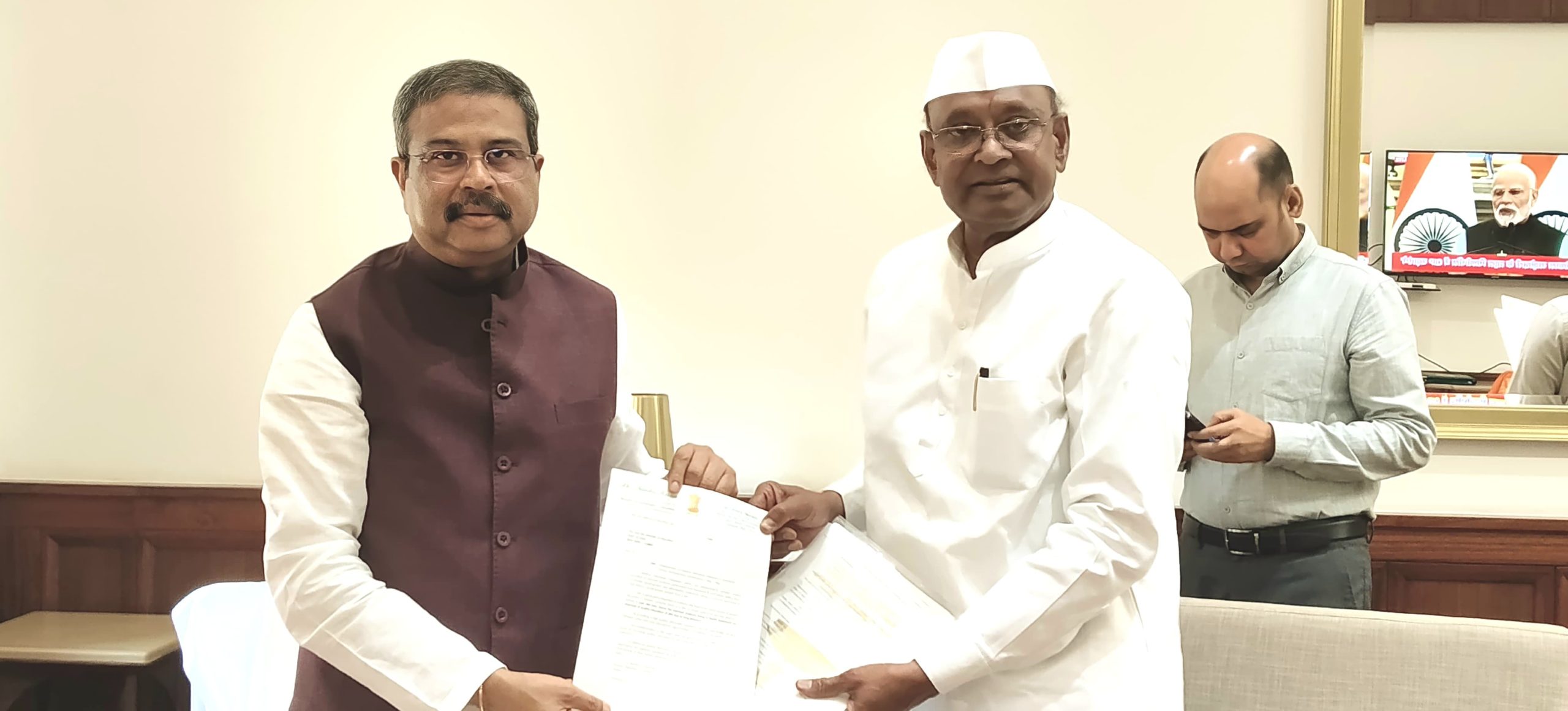 खासदार डॉ. नामदेव किरसान यांनी घेतली केंद्रीय शिक्षा मंत्री धर्मेंद्र प्रधान यांची भेट ; गडचिरोली जिल्ह्यात केंद्रीय विद्यालय सह अभियांत्रिकी महाविद्यालय व अतिरिक्त नवोदय विद्यालय स्थापन करण्याची केली मागणी