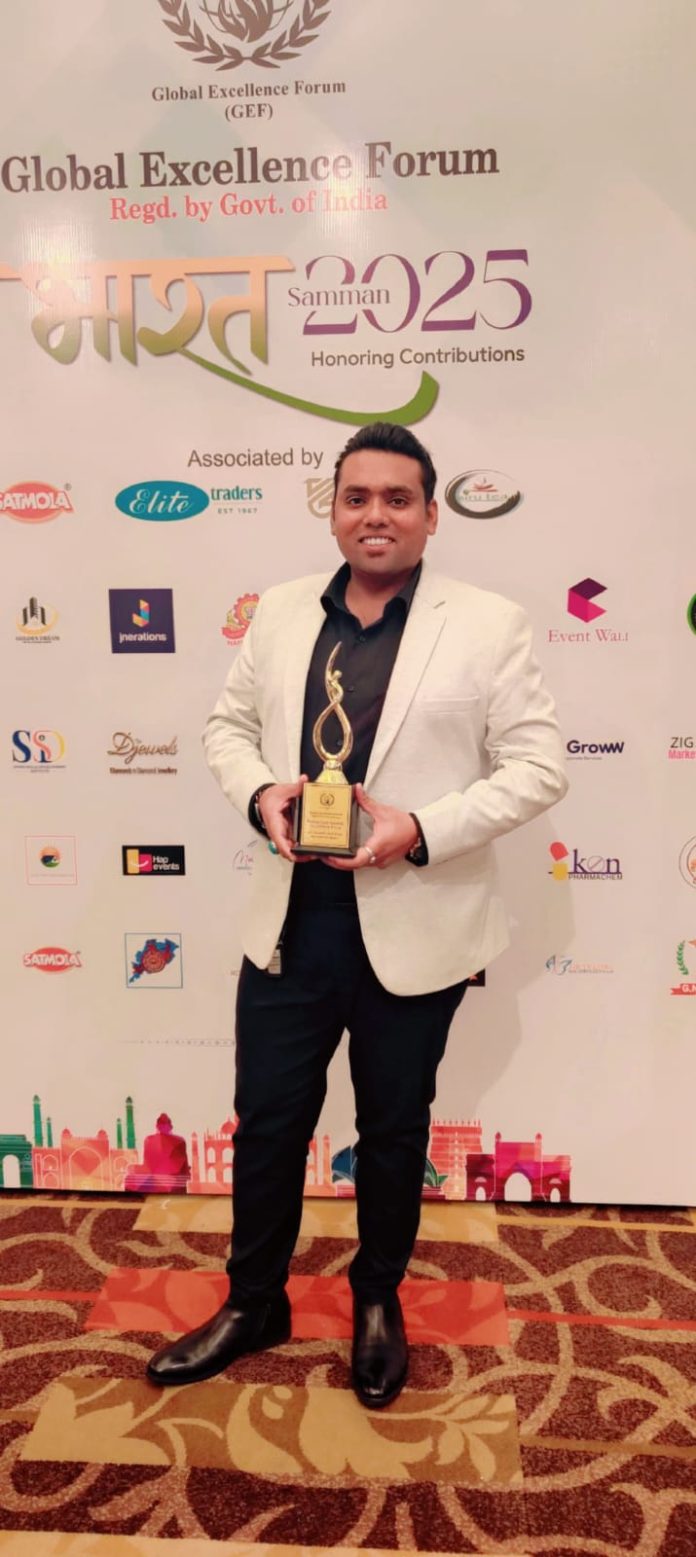 मुंबई (अनिल बेदाग) : हाल ही में देश की राजधानी नई दिल्ली में यूनाइटेड नेशन्स के सस्टेनेबल डेवलपमेंट लक्ष्यों पर संलग्न देश की सबसे प्रतिष्ठित वैश्विक उत्कृष्टता मंच (ग्लोबल एक्सीलेंस फोरम) द्वारा डॉ.मोहम्मद आज़म खान, जो एक प्रशंसित सामाजिक कार्यकर्ता, फिल्म निर्माता और जन हितकारी युवा चेंजमेकर के रूप में प्रसिद्ध हैं, को उनके अनुकरणीय सामाजिक कल्याण, सतत विकास और सामुदायिक युवा सशक्तिकरण हेतु “भारत सम्मान 2025” से सम्मानित किया गया।