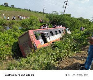 शेगाव बू(दि.5ऑगस्ट):- वरोरा चिमूर राष्ट्रीय महामार्ग =३५३ ई) वर असलेल्या चारगाव (बु) जवळील नदीच्या पुलाजवळ राज्य परिवहन विभागाची चिमूर आगाराची चिमूर-चंद्रपूर ही बस आज(5ऑगस्ट) दुपारी चिमूर वरून चंद्रपूरला जात असताना चालकाचे नियंत्रण सुटल्याने चारगाव धरण जवळ इरई नाल्याच्या पुलाजवळ सुमारे १० फूट खोल खड्ड्यात गेल्याने अनेक प्रवासी जखमी झालेले आहे. त्या बस मध्ये एकूण अंदाजे ३५ प्रवासी होते.