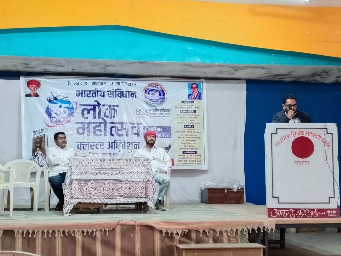 म्हसवड-सातारा(दि.12ऑगस्ट):- बी एस फोर अभियानांतर्गत भारतीय संविधान लोक महोत्सव अर्थात जिल्हा क्लस्टर अधिवेशन सातारा येथील शिक्षक बँक सभागृहात उत्साहात संपन्न झाले.