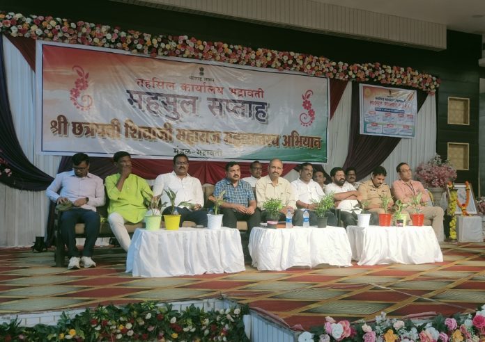 चंद्रपूर(दि.5ऑगस्ट):-महसूल सप्ताह – 2025 अंतर्गत भद्रावती तहसील कार्यालयाच्या वतीने भद्रावती मंडळामध्ये छत्रपती शिवाजी महाराज महाराजस्व अभियान राबविण्यात आले. कार्यक्रमाच्या अध्यक्षस्थानी भद्रावतीचे तहसीलदार राजेश भांडारकर तर प्रमुख पाहुणे म्हणून वरोराचे उपविभागीय अधिकारी अतुल जटाळे, पोलिस निरीक्षक पारधी, तालुका आरोग्य अधिकारी डॉ. संजय आसुटकर, अनिल धानोरकर, सुनिल नामोजवार, प्रफुल चटकी, विजय वानखेडे, सुधीर सातपुते, डॉ. सिंग, नायब तहसीलदार काळे व मनोज आकनूरवार उपस्थित होते.