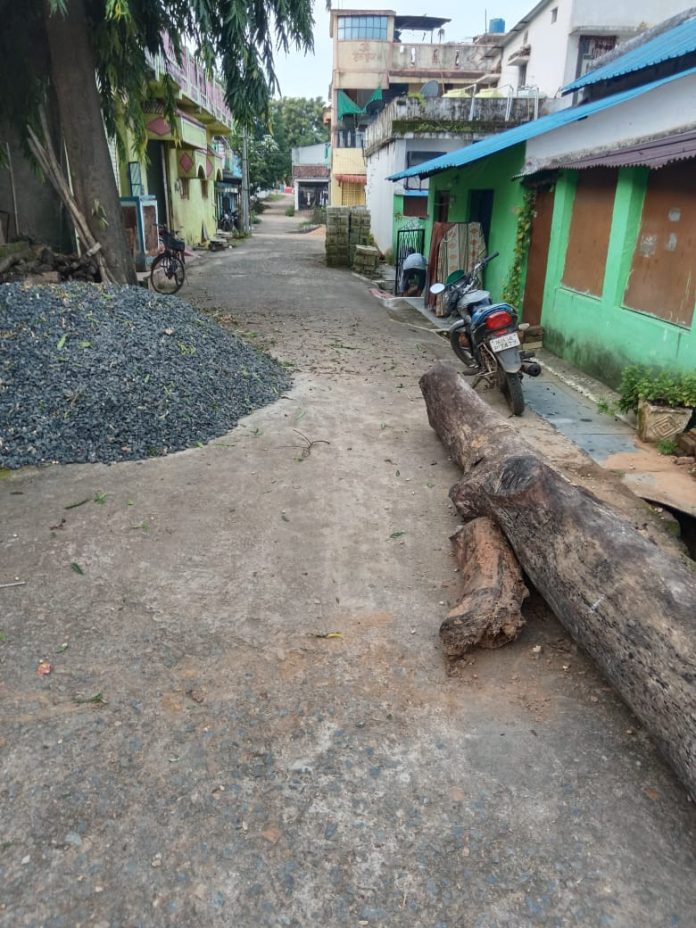 सविस्तर की, शहरातील श्री संत गजानन महाराज मंदिर, पंचशील वार्ड येथील नगरपरिषद शासकीय सिमेंट रस्त्यावर गैरअर्जदार गोविल चंदन टेंभुर्णे यांनी आपल्या घर बांधकामांचे साहित्य गिट्टी, वाळू, विटा हे रोडवरच ठेवले. याने जनतेचा चारचाकी, दूचाकी मार्गावर भयंकर अडथळा निर्माण होत आहे. पावसाळ्याचे दिवस असल्याने या साहित्यांमधे सरपटणारे प्राणी शिरून जनतेस धोका निर्माण झाला आहे.
