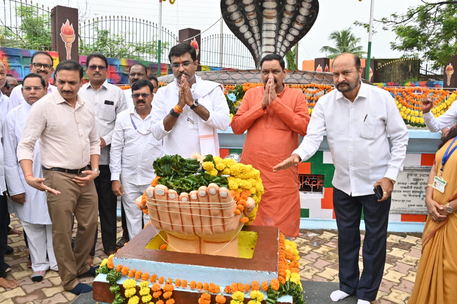 यावेळी प्रभारी जिल्हाधिकारी डॉ. नितीन व्यवहारे, मुख्य कार्यकारी अधिकारी पुलकित सिंह, जिल्हा पोलिस अधिक्षक मुम्मका सुदर्शन, चिमूरचे अतिरिक्त जिल्हाधिकारी संतोष थिटे, उपविभागीय अधिकारी किशोर घाडगे, तहसीलदार श्रीधर माने, नगर परिषद मुख्याधिकारी अर्चना वंजारी यांनीसुध्दा शहीद स्मारकाला अभिवादन केले.