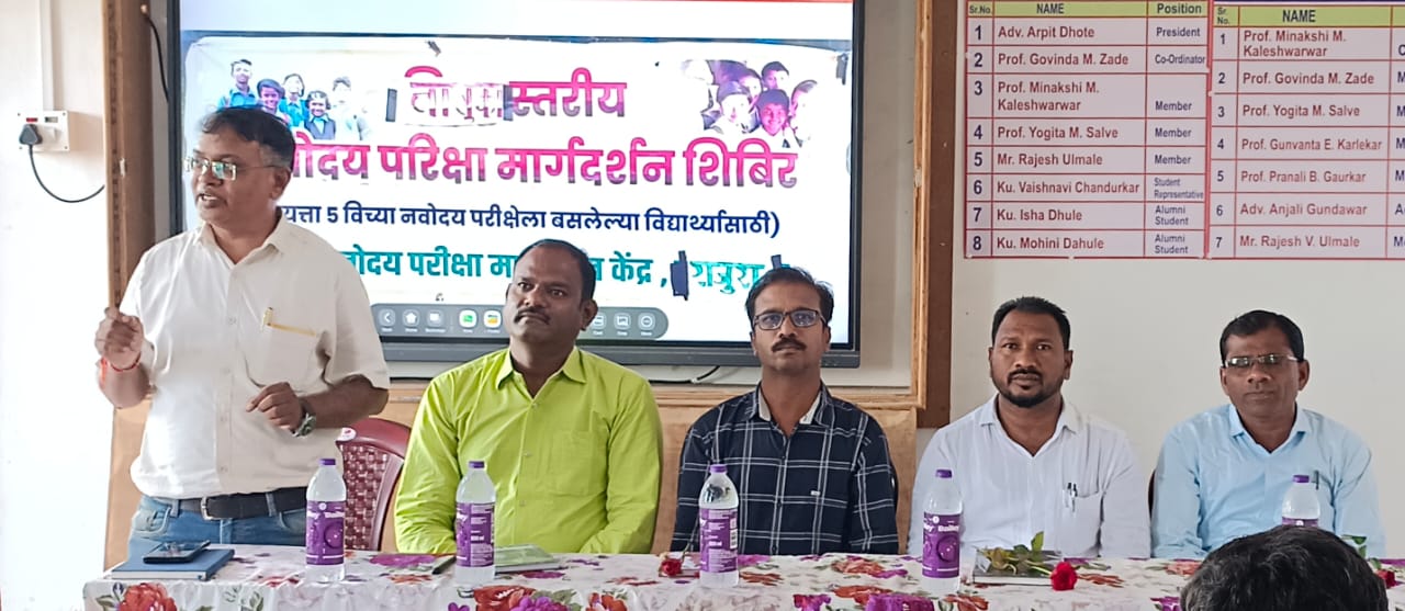 राजुरा : जवाहर नवोदय परीक्षा मार्गदर्शन केंद्र चंद्रपूर अंतर्गत जवाहर नवोदय विद्यालय प्रवेश परीक्षा, शिष्यवृत्ती परीक्षा व सैनिकी स्कूल प्रवेश परीक्षासाठी बसणाऱ्या खाजगी अनुदानित शाळा आणि इंग्रजी कॉन्व्हेन्ट शाळेतील हिंदी, इंग्रजी व मराठी माध्यमांच्या इयत्ता पाचवीच्या विद्यार्थ्यासाठी आयोजित एकदिवसीय तालुकास्तरीय नवोदय परीक्षा, स्कॉलरशिप परीक्षा व सैनिक स्कूल प्रवेश परीक्षापूर्व मार्गदर्शन कार्यशाळा ॲड.यादवराव धोटे कनिष्ठ महाविद्यालय,राजुरा येथे आयोजित करण्यात आली.