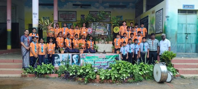 बालविद्या शिक्षण प्रसारक मंडळ राजुरा द्वारा संचालित आदर्श मराठी प्राथमिक विद्यामंदिर तथा आदर्श हायस्कूल राजुरा येथे दरवर्षीप्रमाणे पर्यावरणपूरक गणेशोत्सव साजरा करण्यात आला. यावेळी राष्ट्रीय हरित सेना इको क्लब , स्काऊट – गाईड्स , कब – बुलबुल या विद्यार्थ्यांनी पुढाकार घेत पर्यावरणपूरक गणेशोत्सवाचे आयोजन केले. राष्ट्रीय हरित सेना विद्यार्थिनी प्रमुख प्राप्ती पावडे हिने मातीचा गणपती तयार केला. विधिवत गणेशाची स्थापना करण्यात आली व विद्यार्थ्यांच्या सहकार्याने प्रसाद वितरण करण्यात आले. पर्यावरणपूरक मातीची गणेशाची मूर्ती स्थापना करावी, कृत्रिम तलावात विसर्जन करावे, निर्माल्य नदी नाल्यात न टाकता निर्माल्य कलशात टाकावे, गणेशोत्सवाच्या निमित्ताने ठीक ठिकाणी स्वच्छता अभियान, वृक्षारोपण, रक्तदान शिबिर, आरोग्य तपासणी शिबिर, करिअर मार्गदर्शन, जनजागृती उपक्रम, गरजूंना मदत, शालेय विद्यार्थ्यांना पुस्तकं, शैक्षणिक व क्रीडा साहित्य वाटप, रुग्णसेवा, सामाजिक पर्यावरणीय संदेश देणारे देखावे उभारण्याचे आवाहन राष्ट्रीय हरित सेना विभाग प्रमुख तथा स्काउट्स मास्तर बादल बेले यांनी केले. यावेळी इयत्ता पहीली ते चौथीच्या विद्यार्थ्यांनि नृत्य सादर केले व आरती गायन केले. गणेशाची आरती करण्याचा मान शालेय क्रीडा स्पर्धेतील जिल्हास्तरावर निवड झालेल्या कबड्डी, बॅडमिंटन, बुद्धिबळ, व विभाग स्तरावर निवड झालेल्या कॅरम , कुस्ती स्पर्धेतील विजयी खेळाडूंना देण्यात आला. यावेळी मुख्याध्यापिका नलिनी पिंगे, राष्ट्रीय हरित सेना इको क्लब विभाग प्रमुख बादल बेले, स्काउट्स मास्तर रूपेश चिडे- गाईड्स कॅप्टन रोशनी कांबळे, कब युनिट लीडर सुनिता कोरडे- बुलबुल युनिट लीडर अर्चना मारोटकर व त्यांचे प्रमुख सर्व शिक्षक, शिक्षीका, सेविका, विध्यार्थी यांची उपस्थिती होती.