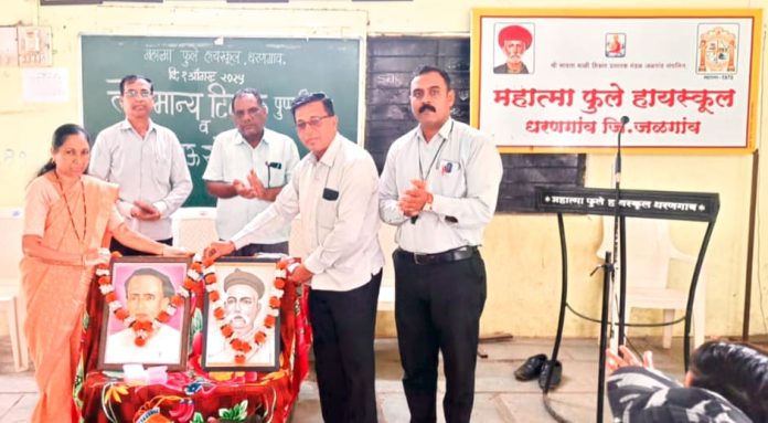 महात्मा फुले हायस्कूल धरणगाव येथे महापुरुषांना वंदन!….