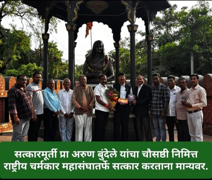 ते दि.२ ऑगस्ट २०२५ ला राष्ट्रीय चर्मकार महासंघाचे शिक्षक आघाडी जिल्हा उपाध्यक्ष,अभंगकार, साहित्यिक, समाजप्रबोधनकर्ते,कै.मैनाबाई बुंदेले प्रतिष्ठानचे अध्यक्ष प्रा.अरुण बुंदेले सर यांच्या चौसष्ठी निमित्त राष्ट्रीय चर्मकार महासंघातर्फे राजमाता जिजाऊ मॉसाहेब स्मारक, अमरावती येथे संपन्न झालेल्या अभिष्टचिंतन कार्यक्रमात विचार व्यक्त करीत होते.