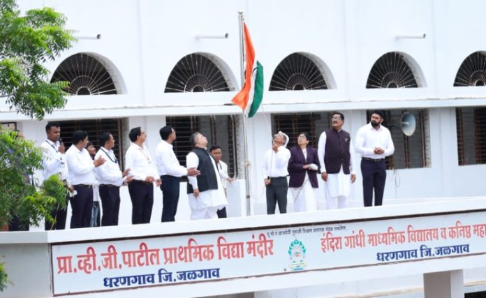 धरणगाव- इंदिरा गांधी माध्यमिक विद्यालय व कनिष्ठ महाविद्यालय प्रा. व्ही.जी.पाटील प्राथमिक विद्यामंदिर,आदर्श प्राथमिक शाळा, आदर्श माध्यमिक विद्यालय व उच्च माध्यमिक विद्यालय धरणगाव यांच्या संयुक्त विद्यमाने ७९ वा स्वातंत्र्य दिन साजरा करण्यात आला.