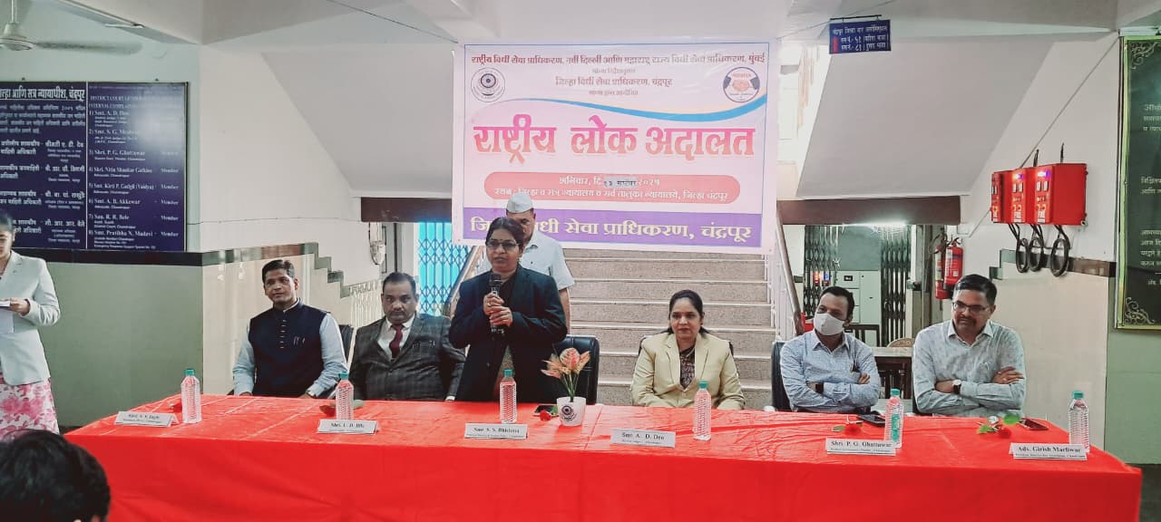 चंद्रपूर, दि. १३ : राष्ट्रीय विधी सेवा प्राधिकरण, नवी दिल्ली आणि महाराष्ट्र राज्य विधी सेवा प्राधिकरण, मुंबई यांच्या निर्देशानुसार आज दि. १३ सप्टेंबर रोजी चंद्रपूर जिल्हा न्यायालयासह सर्व तालुक्यातील न्यायालयांमध्ये राष्ट्रीय लोकअदालतीचे आयोजन करण्यात आले.