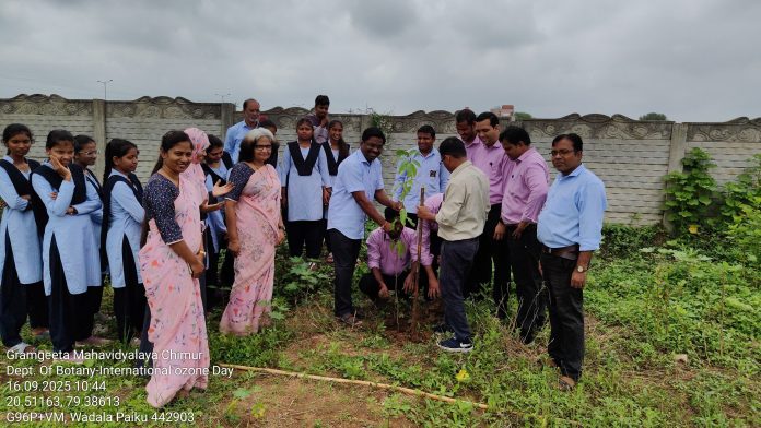 चिमूर : ग्रामगीता महाविद्यालय, चिमूर येथे जागतिक ओझोन दिन मोठ्या उत्साहात व शैक्षणिक वातावरणात साजरा करण्यात आला. या कार्यक्रमाचे अध्यक्षस्थान महाविद्यालयाच्या प्राचार्य डॉ. सुनंदा एस. आस्वले यांनी भूषविले होते. कार्यक्रमाचे आयोजन महाविद्यालयातील ईको क्लब, वनस्पतिशास्त्र विभाग आणि पर्यावरणशास्त्र विभाग यांच्या संयुक्त विद्यमाने करण्यात आले होते.