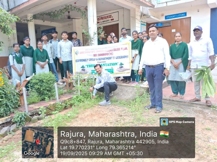 राजुरा -हरित महाराष्ट्र समृध्द महाराष्ट्र अभियान अंतर्गत स्थानिक शिवाजी महाविद्यालयात इको फ्रेंडली ग्रुप आणि भूगोल विभागाचे विद्यार्थ्यानी महाविद्यालयाच्या प्रांगणात विविध प्रजातीचे वृक्षारोपण केले.