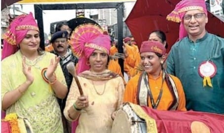 नाशिक मनपा आयुक्तांचे गणेश विसर्जन मिरवणुकीत सासूंबाई सोबत ढोलवादन
