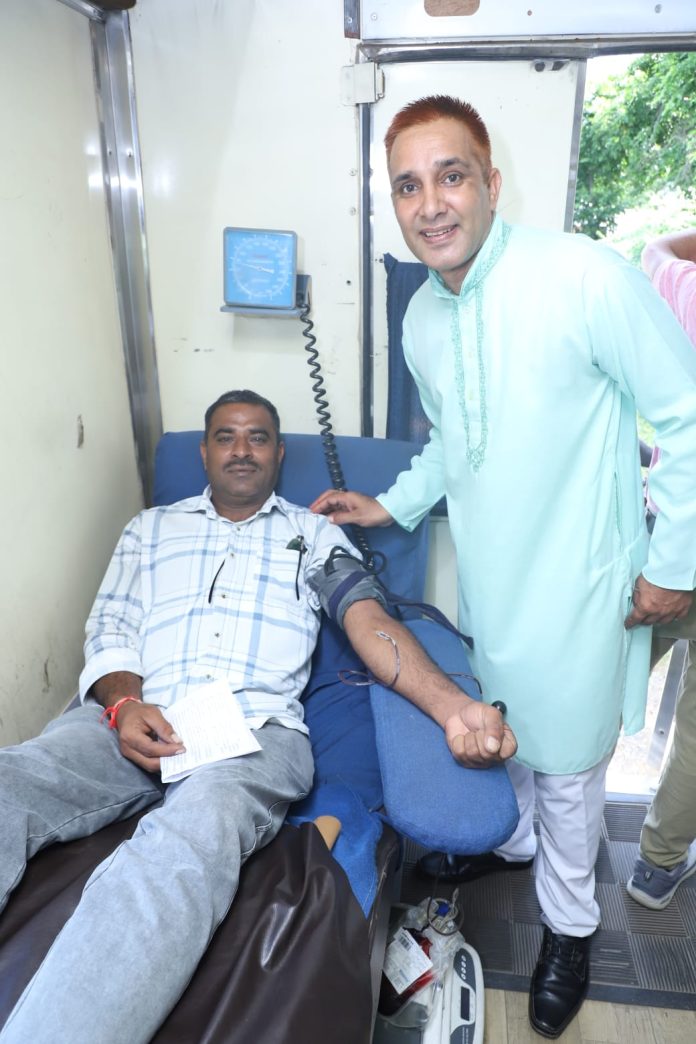रक्तदान शिविर का शुभारंभ मुख्य अतिथि रक्तदानी नितेश भौरिया, प्रो. अर्बन युवा रेडीमेड स्टोर, कोसली ने 43वी बार रक्तदान करके किया।