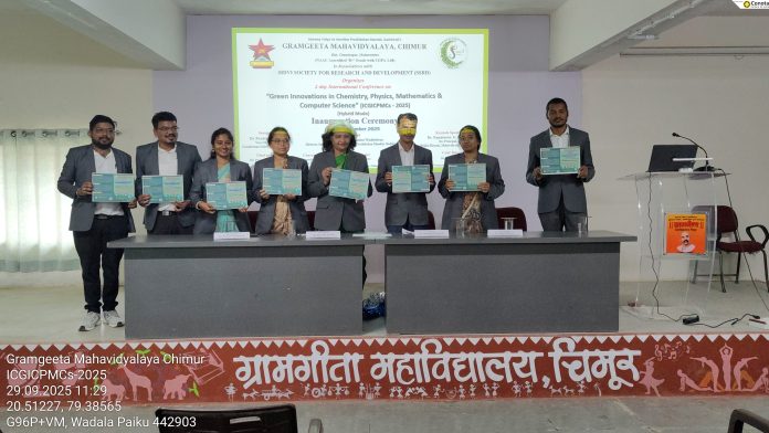 चिमूर (प्रतिनिधी): सेमाना विद्या व वनविकास प्रशिक्षण मंडळ, गडचिरोली द्वारा संचालित ग्रामगीता महाविद्यालय, चिमूर आणि सिदवी फाउंडेशन, विशाखापट्टणम आंध्रप्रदेश यांच्या संयुक्त विद्यमाने आयोजित करण्यात आलेली दोन दिवसीय आंतरराष्ट्रीय परिषद दिनांक २९ व ३० सप्टेंबर २०२५ रोजी यशस्वीपणे पार पडली. या परिषदेचा विषय “रसायनशास्त्र, भौतिकशास्त्र, गणित व संगणकशास्त्रातील पर्यावरणपूरक नवसंकल्पना”होता.