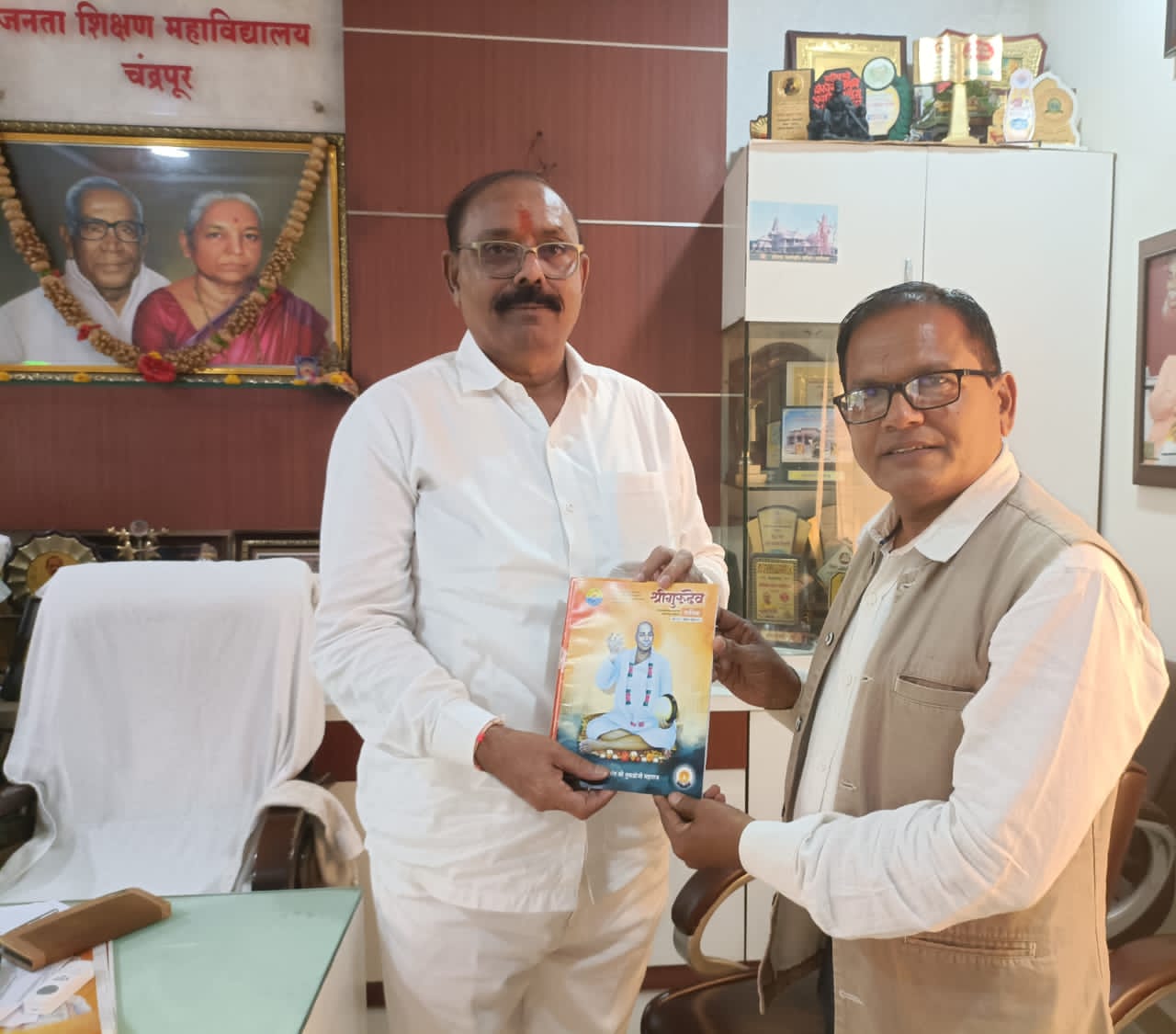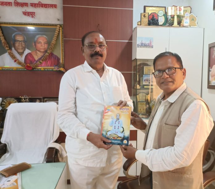Home चंद्रपूर शिक्षण महर्षी डॉ. अशोक जिवतोडे यांना राष्ट्रसंत पुण्यतिथी साहित्य विशेषांक भेट