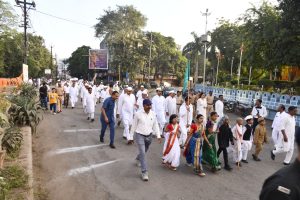 गांधी रिसर्च फाउंडेशनतर्फे गुरुवारी विश्व अहिंसा दिवस, चरखा जयंती, राष्ट्रपिता महात्मा गांधी व लालबहादूर शास्त्री यांच्या जयंतीनिमित्त अंहिसा सद्भावना शांती रॅलीचे आयोजन केले होते. यावेळी व्यासपीठावर खासदार स्मिता वाघ, आमदार सुरेश भोळे, जिल्हा परिषदेच्या मुख्य कार्यकारी अधिकारी मिनल करनवाल, कवयित्री बहिणाबाई चौधरी विद्यापीठाचे कुलगुरू डॉ. व्हि. एल. माहेश्वरी, मनपा आयुक्त ज्ञानेश्वर ढेरे, राजेंद्र मयूर, डॉ.सुदर्शन अयंगार, *जैन इरिगेशनचे अध्यक्ष अशोक जैन , उपाध्यक्ष* अनिल जैन, ज्योती जैन, गीता धर्मपाल, अंबिका जैन या मान्यवरांची उपस्थिती होती. त्याप्रमाणे या रॅलीत अतुल जैन, डॉ. भावना जैन, जैन परिवारातील सदस्य, अनिश शहा, शिरीष बर्वे यांच्यासह जैन इरिगेशन सिस्टम्स लि., गांधी रिसर्च फाऊंडेशन गांधी तीर्थचे सहकारी, अनुभूती निवासी आणि इंग्लीश मीडियम स्कूलचे विद्यार्थी तसेच शहरातील इतर शाळांचे विद्यार्थी व नागरिक उपस्थित होते.