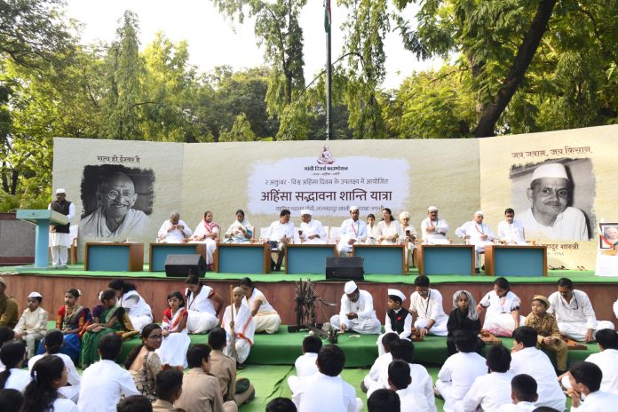 गांधी उद्यानातील कार्यक्रमास प्रारंभी सर्वधर्मप्रार्थना झाली. त्यानंतर अनुभूती इंटरनॅशनल रेसीडेन्सीच्या विद्यार्थांनी ‘वैष्णव जन तो तेने कही ये…’ भजन सादर केले. प्रास्तविक गांधी रिसर्च फाउंडेशनचे सहकारी आश्विन झाला यांनी केले. त्यात त्यांनी गांधी रिसर्च फाउंडेशन करत असलेल्या कार्याची माहिती दिली. गुजरात विद्यापीठाचे माजी कुलगुरु डॉ. सुदर्शन आयंगार यांनी उपस्थितांना अंहिसेची शपथ दिली. सूत्रसंचालन गिरीश कुळकर्णी यांनी केले तर आभारप्रदर्शन चंद्रशेखर पाटील यांनी मानले. राष्ट्रगीताने कार्यक्रमाचा समारोप झाला.