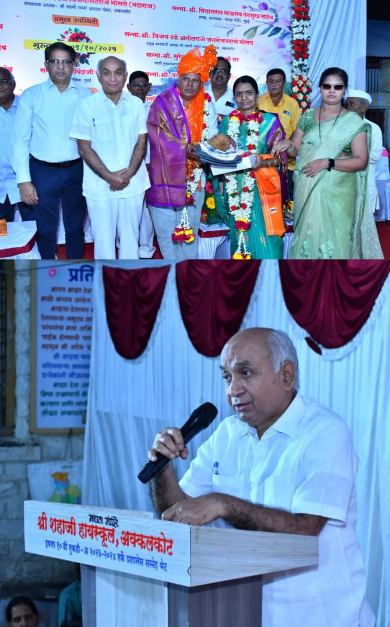अक्कलकोट(दि.11ऑक्टोबर):-माणसांचं मोठेपण तो किती मोठा झाला यापेक्षा त्याने किती लोकांना मोठे केले यावर त्यांचे मोठेपण मोजले जाते. शिक्षण देणे हे आपल्या जीवनाचे धेय्य आहे आणि ज्ञानदानाचे समर्पण करणे हा आपल्या जीवनाचा अविभाज्य भाग आहे हे मनोमन स्वीकारलेल्या जंगाले गुरुजींच्या शैक्षणिक सेवा कार्याची महानता भावी पिढीला आदर्शवत अन प्रेरणादायी ठरेल अशीच आहे. शिक्षण हे संस्कृती संवर्धनाचे साधन आहे, तर शिक्षक हा संस्कृतीचा साधक आहे. ही वृत्ती सरांनी आयुष्यभर जोपासली त्याचा मी गेल्या चार दशकांचा साक्षीदार आहे असे उद्गार मराठा मंदिर या संस्थेचे उपाध्यक्ष विलासराव देशमुख यांनी काढले.