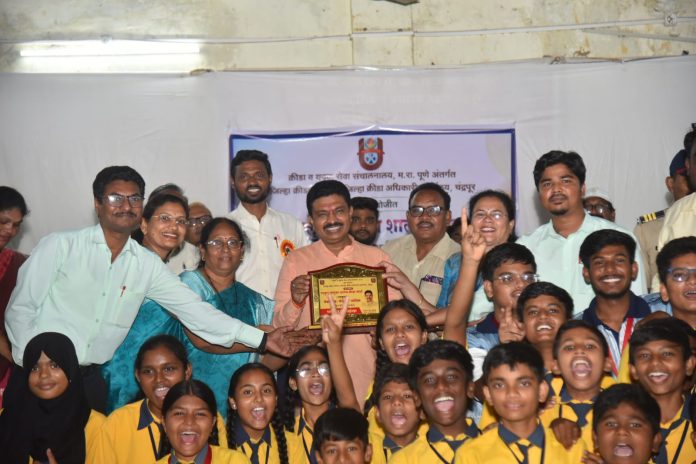 राजुरा(दि.7नोव्हेंबर):-क्रीडा व युवक सेवा संचनालय महाराष्ट्र राज्य पुणे अंतर्गत जिल्हा क्रीडा अधिकारी कार्यालय व जिल्हा क्रीडा परिषद चंद्रपूर , राजुरा तालुका शालेय क्रीडा स्पर्धांचे बक्षीस वितरण सोहळा नुकताच संपन्न झाला. महात्मा ज्योतिबा फुले विद्यालय येथील सावित्रीबाई फुले सांस्कृतिक सभागृहात हा बक्षिस वितरण सोहळा संपन्न झाला. यावेळी कार्यक्रमाचे उद्घाटक म्हणून देवराव भोंगळे , आमदार , राजुरा विधानसभा क्षेत्र राजुरा हे होते. तर कार्यक्रमाच्या अध्यक्षस्थानी हरिश्चंद्र विरुटकर , तालुका क्रीडा संयोजक, राजुरा , विशेष अतिथी म्हणून मोरेश्वर गायकवाड , जिल्हा क्रीडा अधिकारी, चंद्रपूर, वाल्मीक खोब्रागडे, सेवानिवृत शिक्षक, तथा जिल्हा क्रीडा संयोजक, चंद्रपूर तर प्रमुख अतिथी म्हणून एस. एस. धोटे, प्राचार्य, महात्मा ज्योतिबा फुले विद्यालय राजुरा , मिलिंद देशकर, शहर महामंत्री, भाजपा, सचिन भोयर, शहर महामंत्री, भाजपा, मंजुषा अलोने, मुख्याध्यापिका, इन्फंट जिजस इंग्लिश पब्लिक हायस्कूल राजुरा, प्रफुल घोटेकर, शहर अध्यक्ष, भाजयुमो, सुधाकर जाधव, मुख्याध्यापक, जी.प.उच्च प्राथमिक शाळा हरदोना (खु.), अभिजीत कोंडावार, शहर महामंत्री, भाजयुमो, क्रीडा शिक्षक राजबिंद्र डाहुले, किशोर चिंचोलकर, भास्कर फरकडे, भार्गवी कोडाली, प्रभाकर साळवे, रविंद्र गोरे , महेंद्र चौधरी , मलिक काजी आदींची प्रामुख्याने उपस्थिती होती.